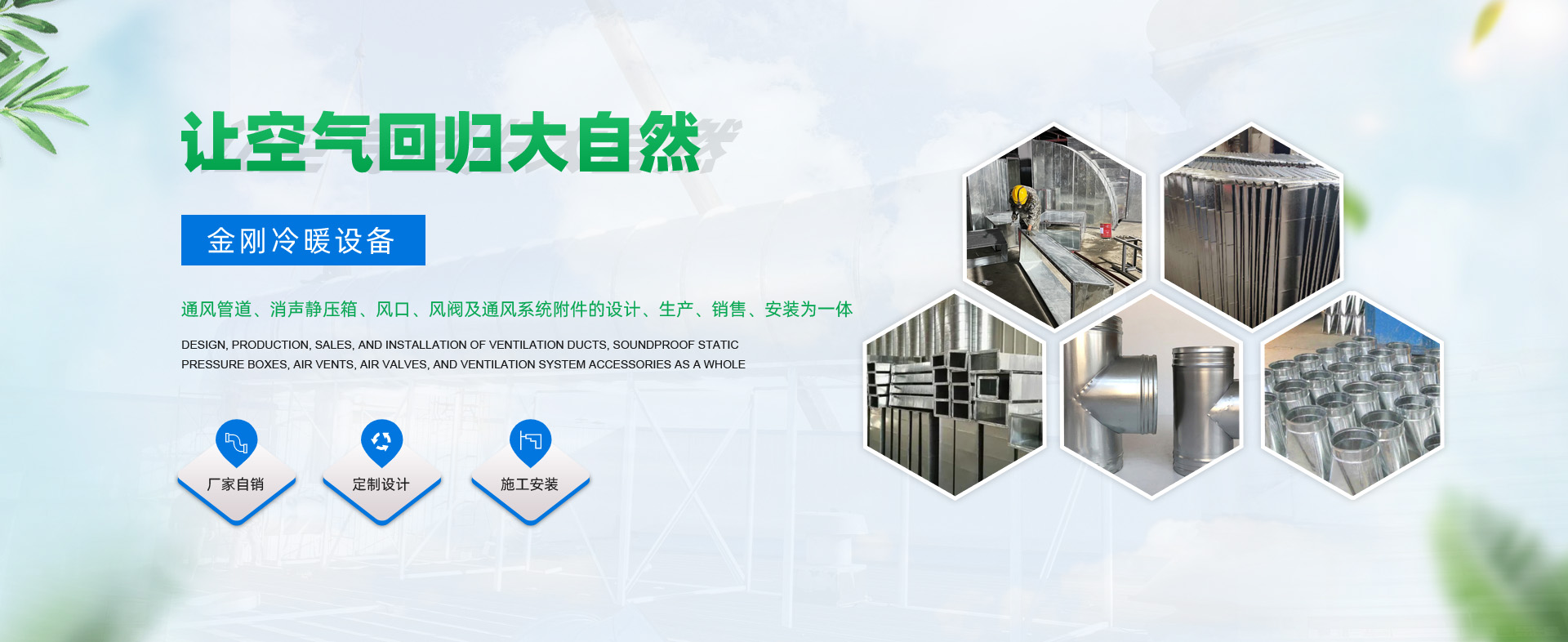 重慶金剛冷暖設(shè)備有限公司是集通風(fēng)管道、消聲靜壓箱、風(fēng)口、風(fēng)閥及通風(fēng)系統(tǒng)附件的設(shè)計(jì)、生產(chǎn)、銷售、安裝為一體的專業(yè)企業(yè)。擁有日生產(chǎn)、加工鍍鋅板、不銹鋼板、各型機(jī)制風(fēng)管3000平方米的能力。我司產(chǎn)品形式多樣,結(jié)構(gòu)新穎,連接牢靠,強(qiáng)度高、密封性好,符合規(guī)范、節(jié)省投資、安裝方便,能夠滿足廣大客戶的各種要求。公司堅(jiān)持以“卓越、創(chuàng)新、快捷、誠信”的服務(wù)理念,為廣大客戶提供高質(zhì)、高效、方便的服務(wù)。在完建的工程中取得了廣大客戶的一致好···
